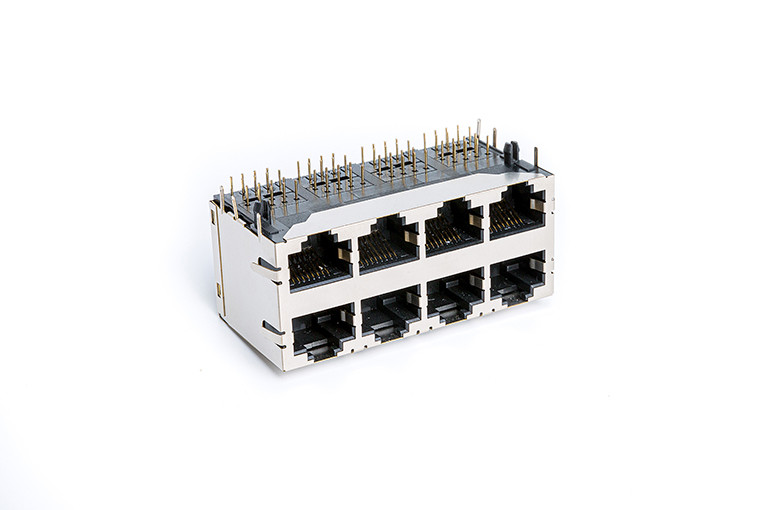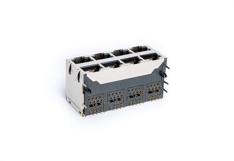 CAT3/CAT5 защищало СТОГ ДЖЕК соединителя Rj45 двойной гавани Magnetics для переключателя сети TM59B824T2X12
